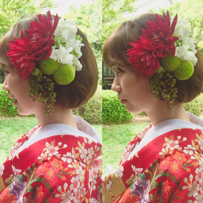 Instagramで見つけた卒花嫁さんの和装婚イマドキかわいい洋髪スタイル 振袖や袴 ドレスによく似合うお花ヘッドアクセの最旬情報をイチ早くお届けします